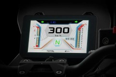 Reflektor LED w SRT 600SX zapewnia doskonałą widoczność nocą dodatkowo pionowo umieszczone kierunkowskazy LED podkreślają nowoczesny, agresywny design motocykla. Cyfrowy wyświetlacz LCD oferuje pełną kontrolę nad parametrami jazdy,w dodatku dzięki intuicyjnemu interfejsowi i czytelnemu podświetleniu.